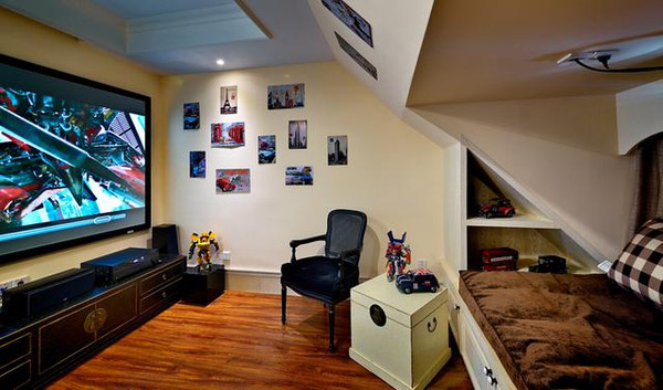 地下室是我的書房兼茶室,老公的影音室,原來兩個(gè)下沉式天井中改造了一個(gè)成為家庭健身房,外加儲(chǔ)藏室、客房和保姆房。